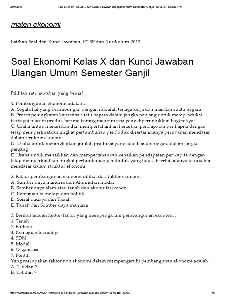 Soal Ekonomi Kelas X Dan Kunci Jawaban Ulangan Umum Semester Ganjil Materi Ekonomi from imgv2-1-f.scribdassets.com Soal ulangan ekonomi bab 1kelas x kode soal b. Materi ilmu ekonomi,,, ekonomi dalam bahasa yunani adalah oikos dan nomos dan dapat diartikan sebagai tindakan manusia dengan hubungan dengan produksi dalam penjualan dan konsumsi. Berbagai permasalahan ekonomi, seperti mengapa suatu barang diproduksi atau apakah barang yang diproduksi adalah barang yang pangan.