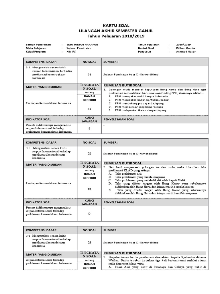 42+ 100 Soal Sejarah Peminatan Kelas Xi. Documents similar to soal uts sejarah peminatan kelas xi. Perang dunia i dan ii paham totalitarianisme, kelembagaan dunia lbb dan pbb kolonialisme, peristiwa pendudukan jepang proklamasi.