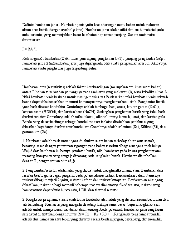 30+ Hambatan Listrik Adalah Pdf. Hambatan dinyatakan dalam satuan ohm. Hambatan listrik juga mempunyai satuan ohm dapat dirumuskan yaitu :