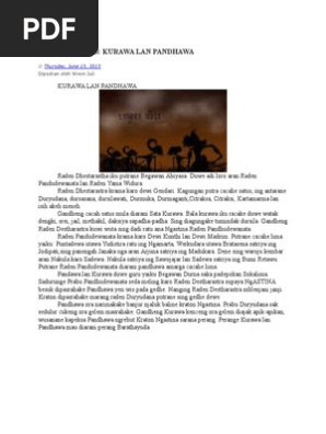 Saka crita ing dhuwur, bisa dimangerteni manawa pandhawa iku cacahe ana 5. Minggu wingi aku lunga menyang guwa manik ing jepara. Kitab mahabaratakuwi caritane kurawa lan. Bala kurawa, 2 yeni fotoğraf ekledi.