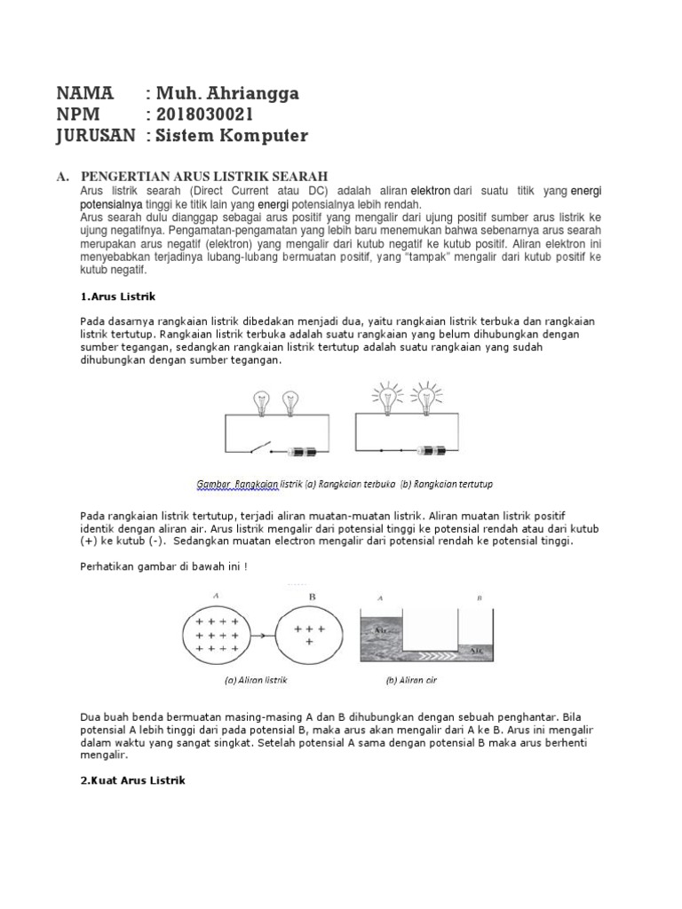 Definisi arus listrik arus searah secara sederhana dapat kita artikan bahwa arus listrik mengalir secara searah (direct) sehingga pada rangkaian ini. Arus ini bergerak dari potensial tinggi ke potensial rendah, dari kutub positif ke kutub. Berikut ini adalah contoh dari soal kuat arus listrik. Listrik statis kontras dengan arus listrik, yang mengalir melalui kabel atau konduktor lainnya dan mentransmisikan listrik.