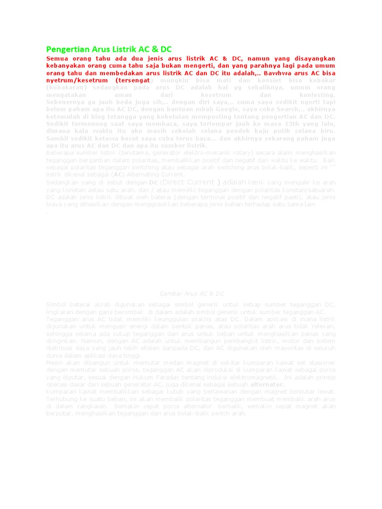 Arus ac dan dc adalah jenis aliran arus listrik yang merupakan pergerakan elektron dalam sebuah rangkaian listrik dan elektronik yang banyak digunakan dan masing masing digunakan untuk tujuan aplikasi yang berbeda menyesuaikan dengan kebutuhan.